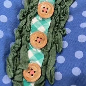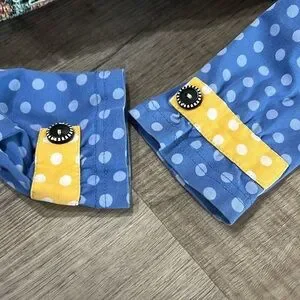 Love this print! Good used condition. Some wear on cuffs and a button does have a crack. Both pictured up close. Still a great dress!