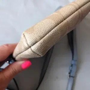 Elevate your style with this elegant Coach women's bag. Featuring a sophisticated tan body with a contrasting blue strap, this bag is perfect for any occasion. The iconic Coach design adds a touch of luxury to your ensemble.needs a bit of cleaning on inside around top. slight fade from jeans in back pocket. no wear on corners or strap. great price for cute GUC😊
