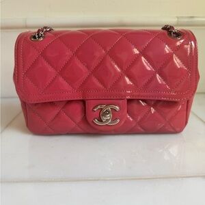 Stunning Chanel Cocoshine pink quilted patent leather bag. No callouts, no color transfer. Sticker is intact. Comes with dustbag.