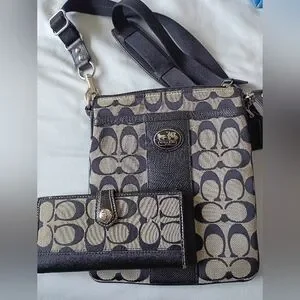 Elevate your style with the Coach Signature Crossbody Bag in black and tan. Perfect for any occasion, this bag combines elegance and functionality. Featuring the iconic Coach design, it's a must-have accessory. very nice set. I'm selling several other brand name items. thanks for looking!