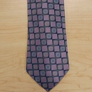 Elevate your style with this geometric patterned tie. Featuring a sophisticated blend of purple and blue with a touch of green, this accessory is perfect for any formal occasion.