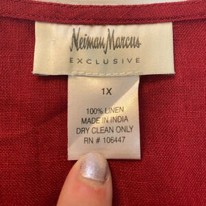 Neiman Marcus Exclusive Maroon 100% Linen Tunic Button Front Blouse Size 1X