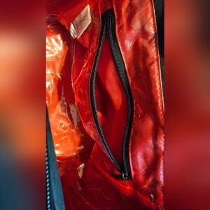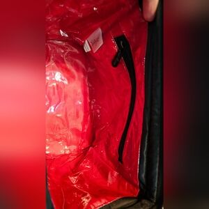 Thirty One Oversized Makeup Bag in Black and White Dots pattern. No stains, peeling, scratches, or callouts. Measures 10 inches by 8 inches by 5.5 inches. One front external pocket, top zipper closure with fully lined interior easy to swipe clean and one inside zipper closure pocket. Stylish bag with a bold black and white geometric pattern. Perfect for everyday use. Ships from smoke-free and pet free home.
