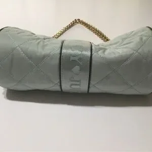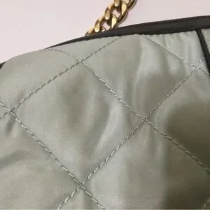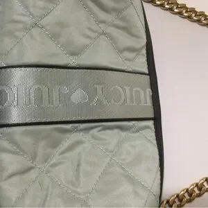 Elevate your style with this Juicy Couture quilted shoulder bag. Featuring a chic green color and a luxurious gold chain strap, this bag is perfect for any occasion. Some stains on bag see pictures.