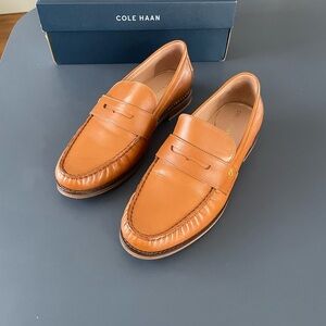Brand new in box. Color: pecan leather. Size 8 wide, women’s, and run a little large. Cute and comfortable work shoes, just run large and I missed return window.