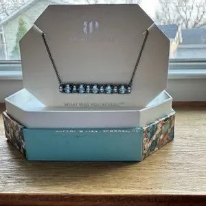 This stunning necklace by BP features elegant blue stones set in a sleek design. Perfect for adding a touch of sophistication to any outfit.