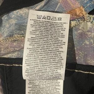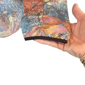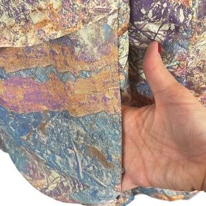 Abstract Nike windbreaker for when black just doesn’t do it for you anymore! Polyester and mesh alongside vents in the back allow you to keep cool when working out. I love pieces that are a little different… this fits the bill. Colours noted are peach, turquoise, purple, pinkish, rust… ❤️