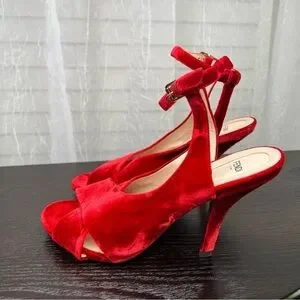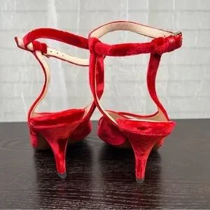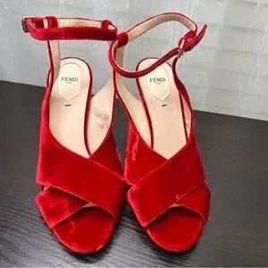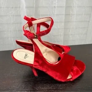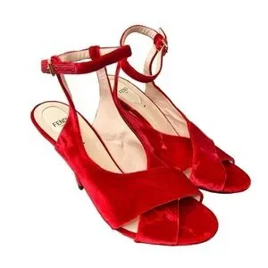 Fendi, Red Velvet Ankle Strap Shoe. 8