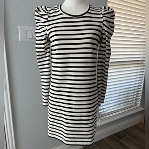 REBECCA MINKOFF Talia Puff Sleeve Black & White Dress Sz XS