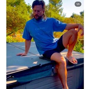 Fashion Brand Company “Caution Hot Jizz” Mock Neck Tee - Brand New