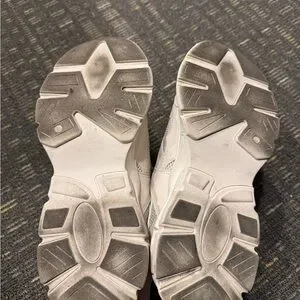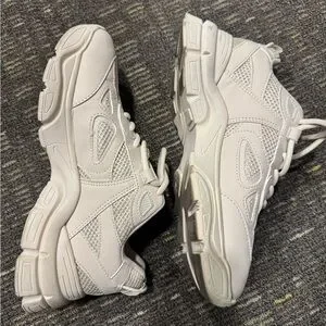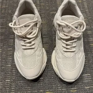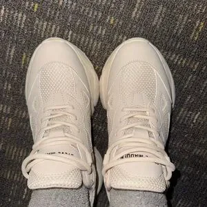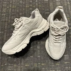 Elevate your style with these chic cream sneakers. Perfect for any casual outing. Great condition with small scuffs on back left inside base of shoe as shown in photos.