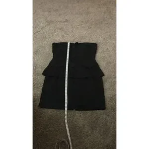 Item details: twenty-one Black strapless mini dress with button detail and back zipper. Fully lined interior. Pre-owned in excellent condition. Size: L. Color: Black. Style: Mini Dress, Strapless. Sleeve length: Sleeveless. Closure: Zip. Features: Strapless, Button Detail, Fully Lined, Back Zipper. Garment care: Refer to care tag.