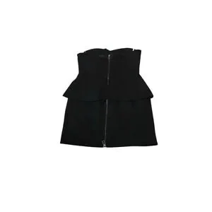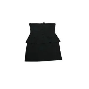 Keywords: black mini dress, strapless dress, party dress, cocktail dress, sleeveless, button detail, back zipper, fully lined, women's fashion, evening wear, pre-owned dress.
