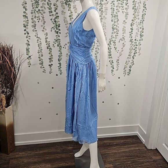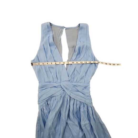 Divine Heritage X Revolve V neck midi dress with open back key hole closure and hidden zipper. The dress is fully lined
