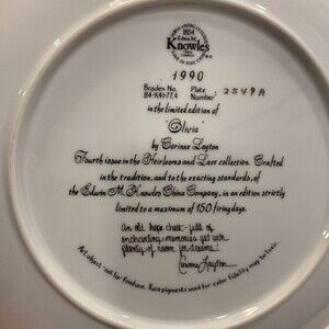 Olivia was Plate number 4 in the Heirloom and Lace Series of Highly Collectible Knowles Plates, Now rare to find because they are sold out, Signed, numbered and in its original box with all original papers.