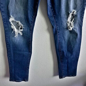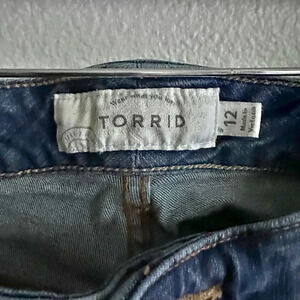 Super great jeans from TORRID! Size 12, worn a handful of times. Comfortable jeans with distressing in a lot of places. Boyfriend fit. Laying flat, approx 9" rise and 32" inseam.