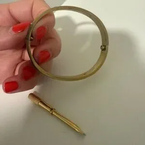 Dupe bracelet. Comes with screwdriver and bracelet, no box or dust bag. Some scratches on outside but has all logos. 6mm wide, comes with 4 stones. Is ❌❌ authentic