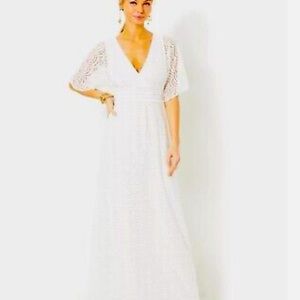 Never worn. Beautiful Lilly Pulitzer maxi dress in resort white scallop lace pattern. Size SMALL. I bought this for my wedding but ended up getting married on a mountain top in hiking clothes! 💜