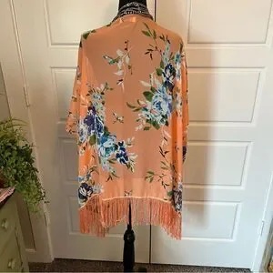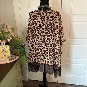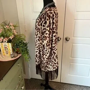 Soul Young Leopard & Floral Open Front Fringe Hem 2 Kimono Duster Blouses O/S