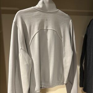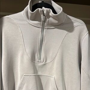 Lululemon women’s brushed softstreme ribbed half zip. Riverstone color, like a light grey/brown color. In perfect condition, no flaws. Size 8.