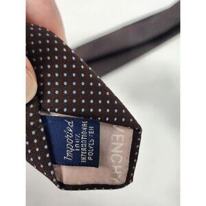VINTAGE Givenchy Gentlemen Paris Necktie Polka Dot Retro Polyester Brown Blue