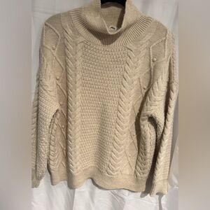 Stay warm and stylish with this classic, cozy, and slouchy beige/cream cable knit sweater. Perfect for layering, this sweater offers both comfort and elegance. Pre-owned excellent condition.