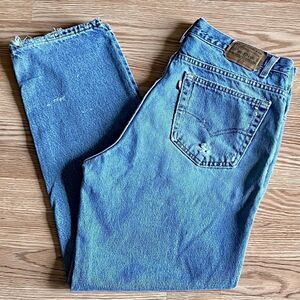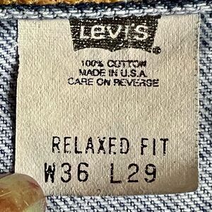 Vintage rare Levi’s 540 brown tab relaxed fit jeans. Perfectly distressed with hole in knee, few paint splatters and distressed hems. Zip fly 5 pocket. Please see photos for measurements. Size 36x 29. Made in USA.