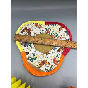 1960s MCM Paper Lanterns (3) Butterfly motif on bases. Approximately 5 - 9" diameters. Each fan is different - one round, one elongated and one tri sided.