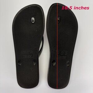 The flip flops are preowned and in good condition, gently used with no flaws or rips but small stains and discoloration, as shown in the pictures.