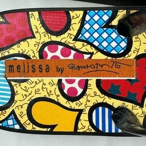 Step into a colorful world with these Mellisa by Romero Brito flip flops! Featuring slip-on closure and a flat heel, these sandals are perfect for traveling or casual wear. The multicolor accents add a playful touch and the heart theme is sure to make a statement. Made in Brazil with rubber outsole, these flip flops are durable and comfortable. The size 10 US women's shoe size, 8 UK shoe size, and 42 EU shoe size make them a versatile choice. Whether you're a fan of the artist Romero Brito or simply love unique and stylish footwear, these sandals are a must-have.
