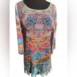 Alushkaby Sienna Roge top Tunic style with fringe design in the bottom, it's see through