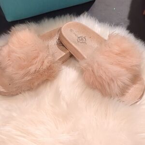 Step into comfort with these cozy pink furry slides. Perfect for lounging or casual outings, these slides offer both style and warmth.