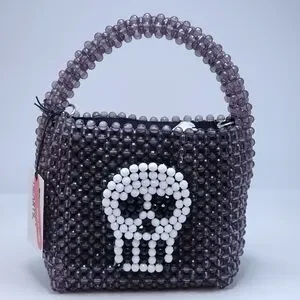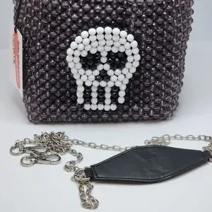 Bouffants And Broken Hearts Skull Beaded Crossbody Bag
