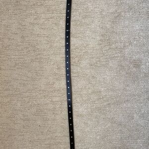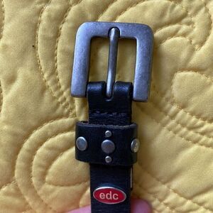 Women’s EDC Black Leather Belt with Silver Accents. Measures 40.5” in length. Preowned in gold condition.