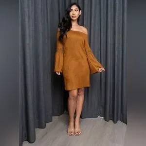 Super cute camel color, micro shade rayon off the shoulder dress