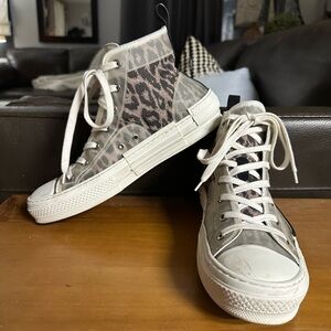 Dior B23 High-Top Sneakers Leopard Canvas Print Unisex Size 41 Women’s 10 RARE