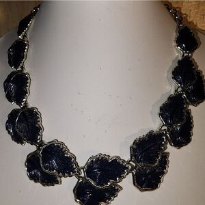 Elegant Black Leaf Necklace No Makers Mark 17"