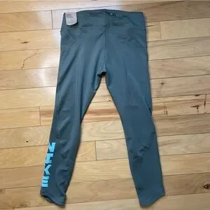Nike Dri-Fit Running 7/8 Tights Mid Rise Tight Fit Sz Med Green Leggings NWT