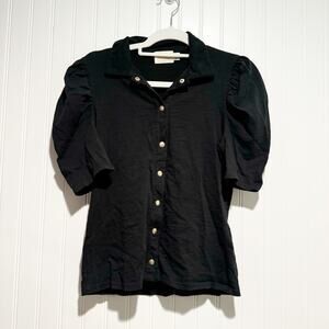 Nation LTD Ennis Work Shirt Black Snap Buttons Puff Sleeves Size XS