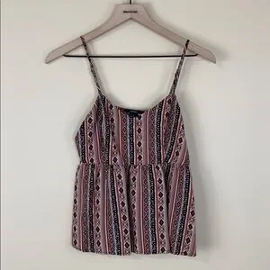 Lightweight and soft slightly cropped Aztec or tribal printed tank top easy to layer with adjustable straps