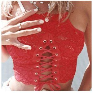 We are HAH by Free People Top 2 Bottom Cami | Size Large Blood Orange Red NEW A1