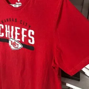 - Kansas City Chiefs NFL logo on front over red backgrounbd