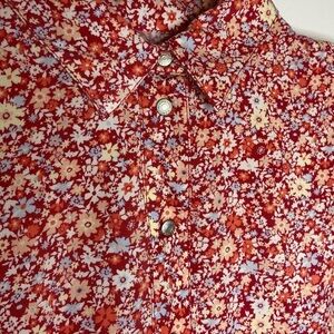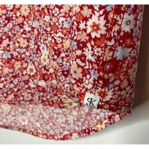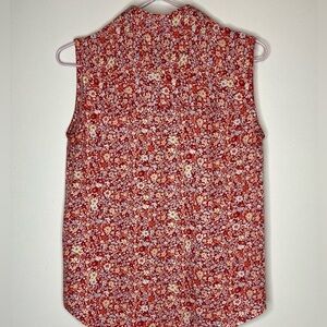 CALVIN KLEIN Top Sleeveless Snaps In Front Red Floral Fabric Size XS