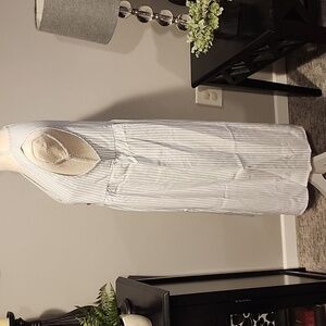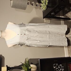 Stripped gray and blue mini dress sleeveless v-neck line size large pit to pit 20 inches and length 37 inches. new
