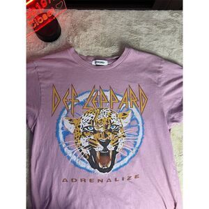Rock your style with this vintage Def Leppard T-shirt in size M, perfect for music lovers and retro enthusiasts alike. This tee in a vibrant pink hue features a striking graphic print that captures the essence of classic rock. Made from soft, breathable cotton jersey, it offers comfort for all seasons. Whether you're heading to a concert, a casual hangout, or just want to add a touch of nostalgia to your everyday look, this crew neck tee is your go-to choice. Hand wash only to maintain its timeless appeal. Pre-owned and ready to continue its rock 'n' roll journey with you.