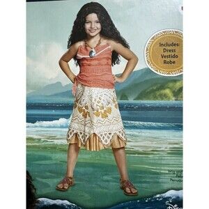 New Disney Moana Classic Adventure Outfit! This one piece dress outfit is perfect for any little girl who wants to dress up as her favorite character. Features Invisible straps and Velcro closure.