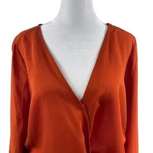 Lulus Twisty Business Orange Twist-Front Long Sleeve Top Sz L Hippy Romantic