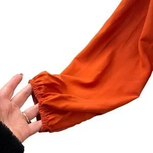 Embrace a blend of professionalism and whimsy with the Lulus Twisty Business Orange Twist-Front Long Sleeve Top. Designed for the modern woman, this relaxed-fit blouse features a playful twist-front design and balloon sleeves that add a touch of fairy-tale charm to your ensemble. The vibrant orange hue can be paired effortlessly with your favorite trousers or skirts, making it a versatile choice for various occasions. Crafted with a comfortable polyester blend and boasting a collarless V-neck, this top ensures ease of movement and a laid-back vibe, perfect for those who value both style and comfort. Whether you're heading to the office, attending a cocktail party, or embarking on travel adventures, this blouse, available in size Large, is an ideal pick for a chic and effortless look. Hand wash care ensures longevity and sustained quality.