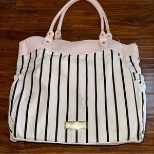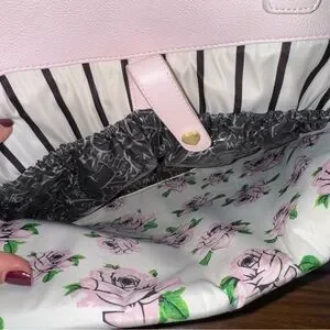 Betsey Johnson Diaper Baby Bag Pink Black Roses Like New