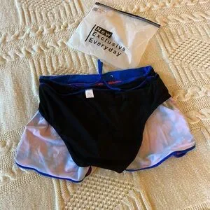 Vibrant pink and blue tankini bottoms. Inner panty. Stretch waist with drawstring. Flattering fit. Measures approximate 17 inches across waist and 13 inches from waist to bottom. NWT in original packaging. No smoking/no pets.